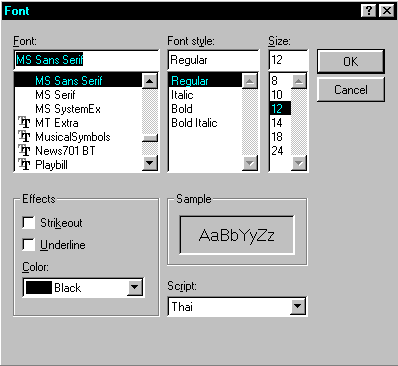 Font เลือก MS Sans Serif หรือ font ที่คุณชอบ