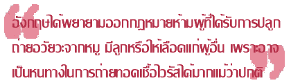 ห้ามผู้ที่ได้รับการปลูกถ่ายอวัยวะจากหมูห้ามมีลูกหลังจากปลูกถ่ายอวัยวะนั้นแล้วเพราะเกรงว่าเชื้อไวรัสในหมู